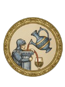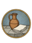 - Iconografía: Dos ánforas vertiendo agua en vino, simbolizando la moderación y la mezcla justa que impone la razón.